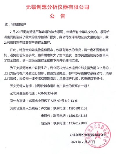 為了支援河南客戶恢復生產,我公司決定洪水退后立即安排為期3個月的,上門為所有客戶免費進行檢修,排查安全隱患。客戶亦可直接聯系我公司,預約上門服務,我公司一律不收取差旅費用,免費維護機器,優惠供應零備件。